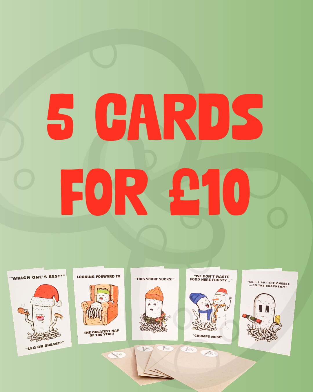 Set includes 5 cards, 5 envelopes and 5 festive Munchie stickers!